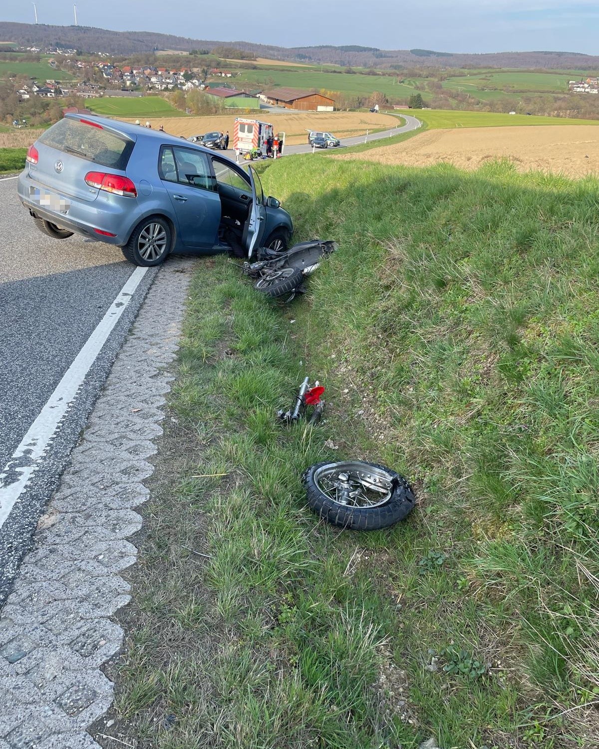 Heute nachmittag wurden wir zu einem Verkehrsunfall zwischen einem PKW und einem Motorrad auf die L3457 (Laubacher Kreuz -> Naunstadt) alarmiert. Wir sicherten die Unfallstelle ab und unterstützten den Rettungsdienst.
