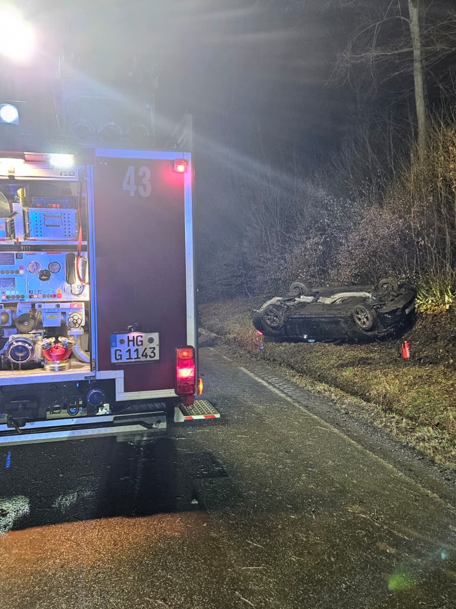 Am heutigen Abend wurden wir zu einem Verkehrsunfall mit einem überschlagenen PKW alarmiert. Nach dem Eintreffen stellte sich zum Glück heraus, dass niemand im Fahrzeug eingeklemmt war. Wir sicherten die Einsatzstelle ab und leuchteten den Bereich aus. Eine Person wurde mit dem Rettungswagen in ein Krankenhaus geliefert.