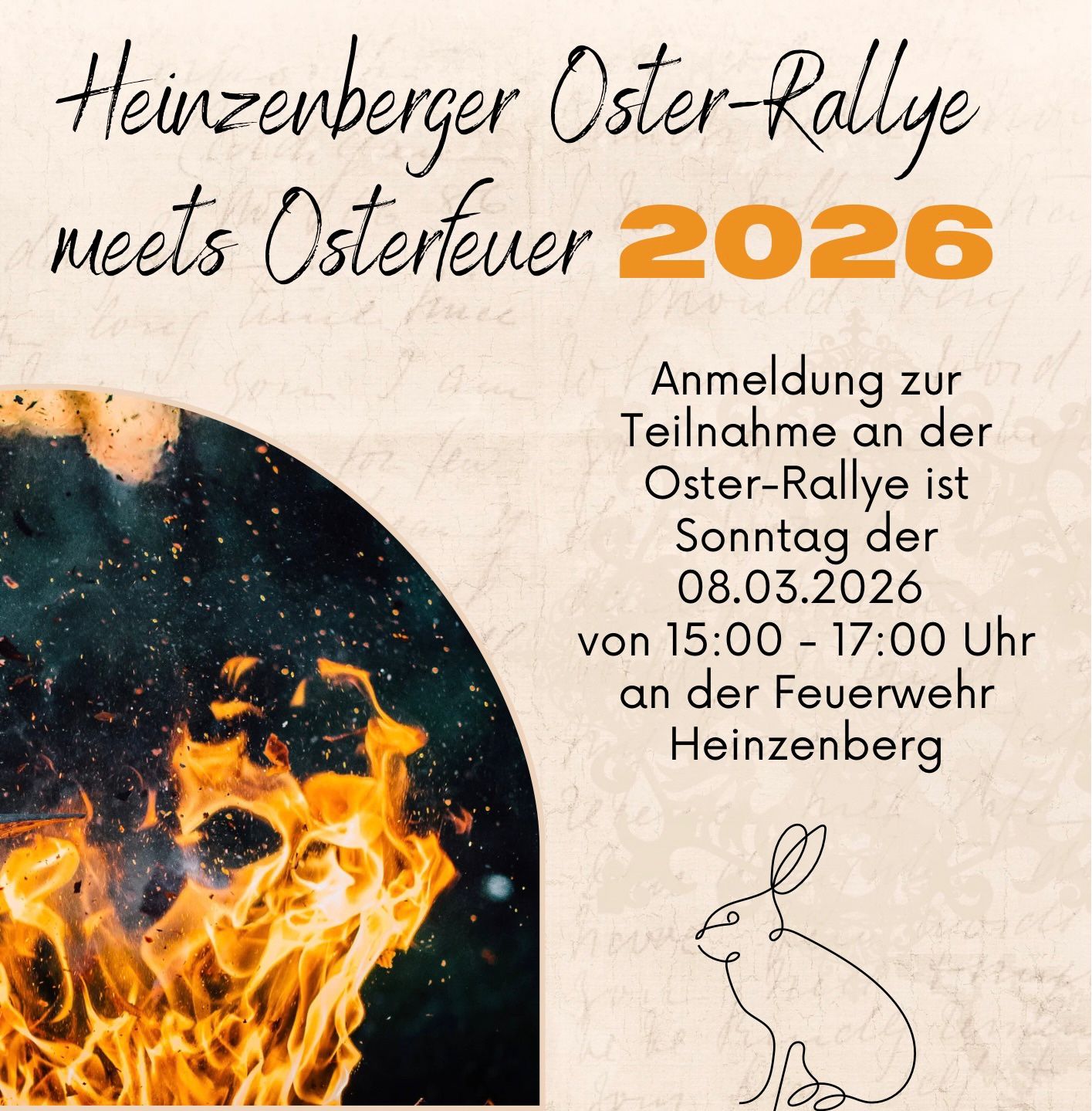 8. März 2026 Anmeldung zur Teilnahme an der Oster-Rally von 15:00 Uhr bis 17:00 Uhr am Feuerwehr Gerätehaus